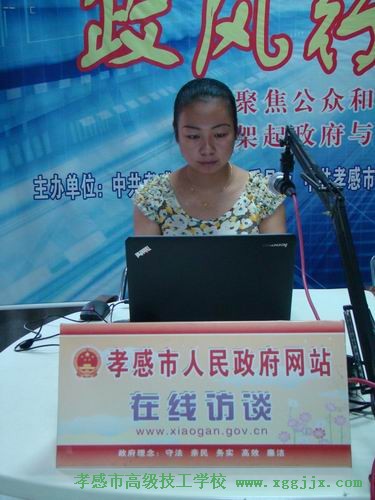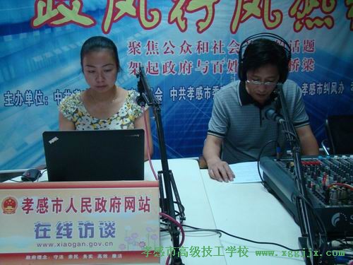 左为孝感人民政府网在线访谈主持人丁娟,右为孝感市高级技工学校校长董家密